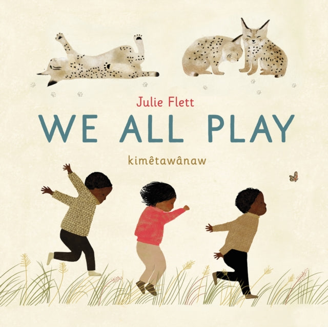 The beloved book about playtime from award-winning Cree-Métis author and artist Julie Flett. Now available as a board book, We All Play is the perfect gift for a new baby or toddler! Named a Best Children’s Book of the Year by New York Times, Washington Post, New York Public Library, Kirkus Reviews, Globe and Mail, Horn Book, and Boston Globe. Baby animals and kids love to play! This wonderful book celebrates playtime and the connection between children and the natural world. Julie Flett’s iconic illustrations celebrate birds who chase and chirp, bears who wiggle and wobble, and owls who peek and peep. A group of kids love to do the same thing, shouting, “We play too! kimêtawânaw mîna.” At the end of the book, the baby animals and kids gently fall asleep after a fun day of playing outside, making this book a great bedtime story. Featuring a glossary of Cree animal names used, We All Play is a beautiful ode to the creatures we share our world with, and belongs on every bookshelf.
