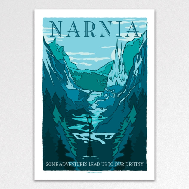 • A high quality art print of Bookishly's vintage style travel poster of Narnia printed on high quality soft white card and displayed in a cello bag with a backing board.