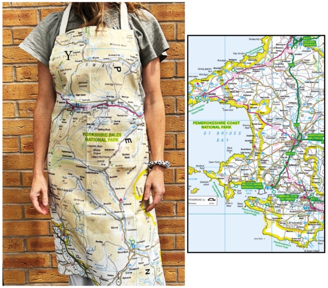 The OS Map Adult Apron - Printed in the UK, our luxuriously thick 100% cotton Adult Aprons, each celebrate a national park. They are packaged in a cardboard belly band for easy display. This licensed OS Map Adult Apron is produced in the UK and celebrates the Pembrokeshire Coast National Park